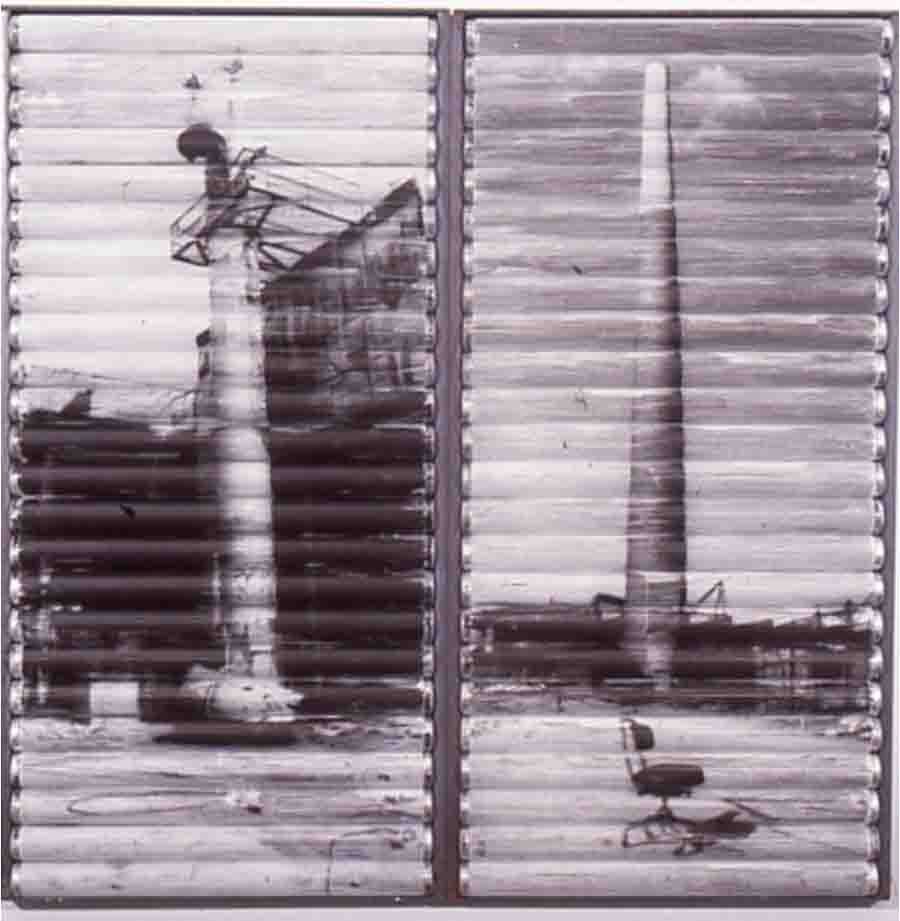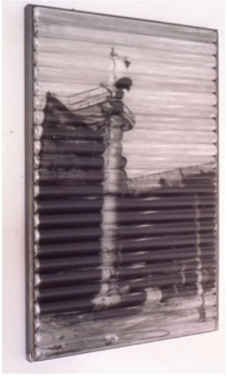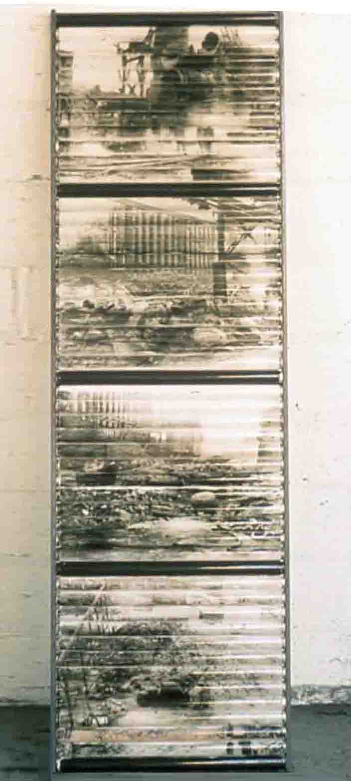 Deteriorating Textile, 1991, Woven News Service images, Steel,