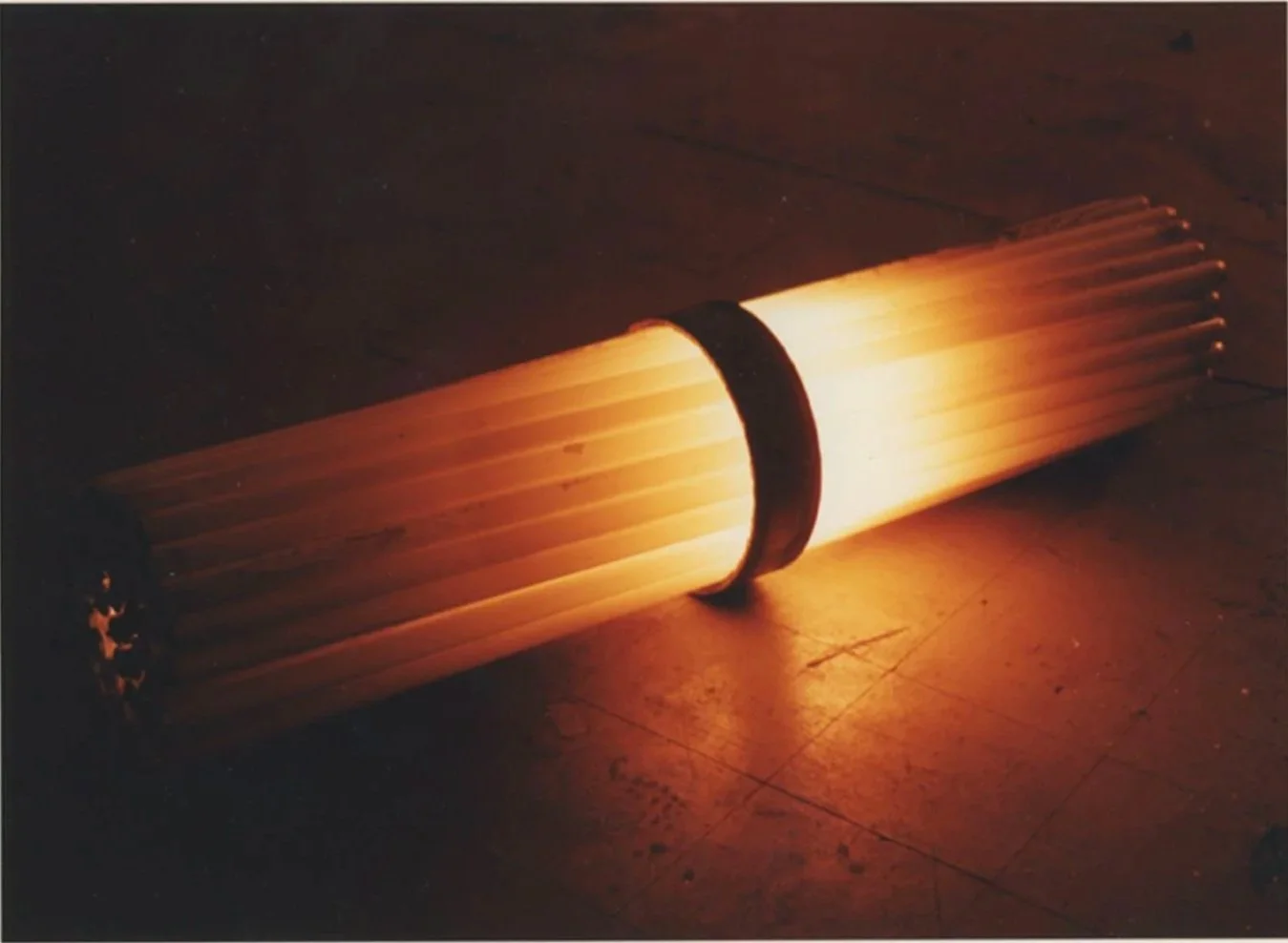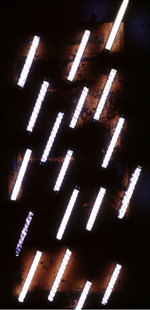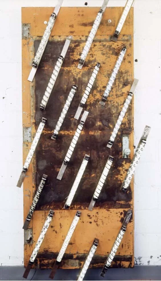 Furnace Flue, 1994, Dead Fluorescent Bulbs Painted with Light Sensitive Emulsion, Steel, 48” x 24”